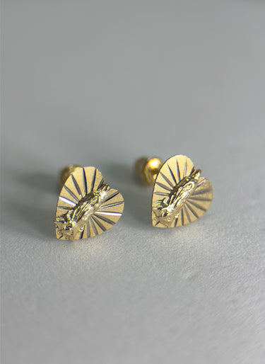 DR2364 - Oro Amarillo de 14K - Tachuelas de Oro de 14K - Santísima Madre / Corazones