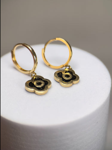 DR2422 - Oro amarillo de 14 quilates - Ónix - Huggies de oro amarillo de 14 quilates - Flor colgante de ónix