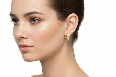 DR6065 14K YELLOW GOLD HOOPS WITH LAB CREATED STONES