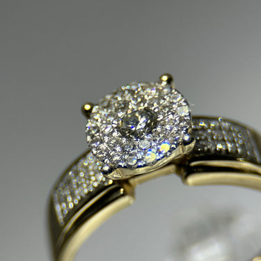 DR1070 - Oro amarillo de 14 quilates - Redondo (Halo) - Diamante - Anillo nupcial