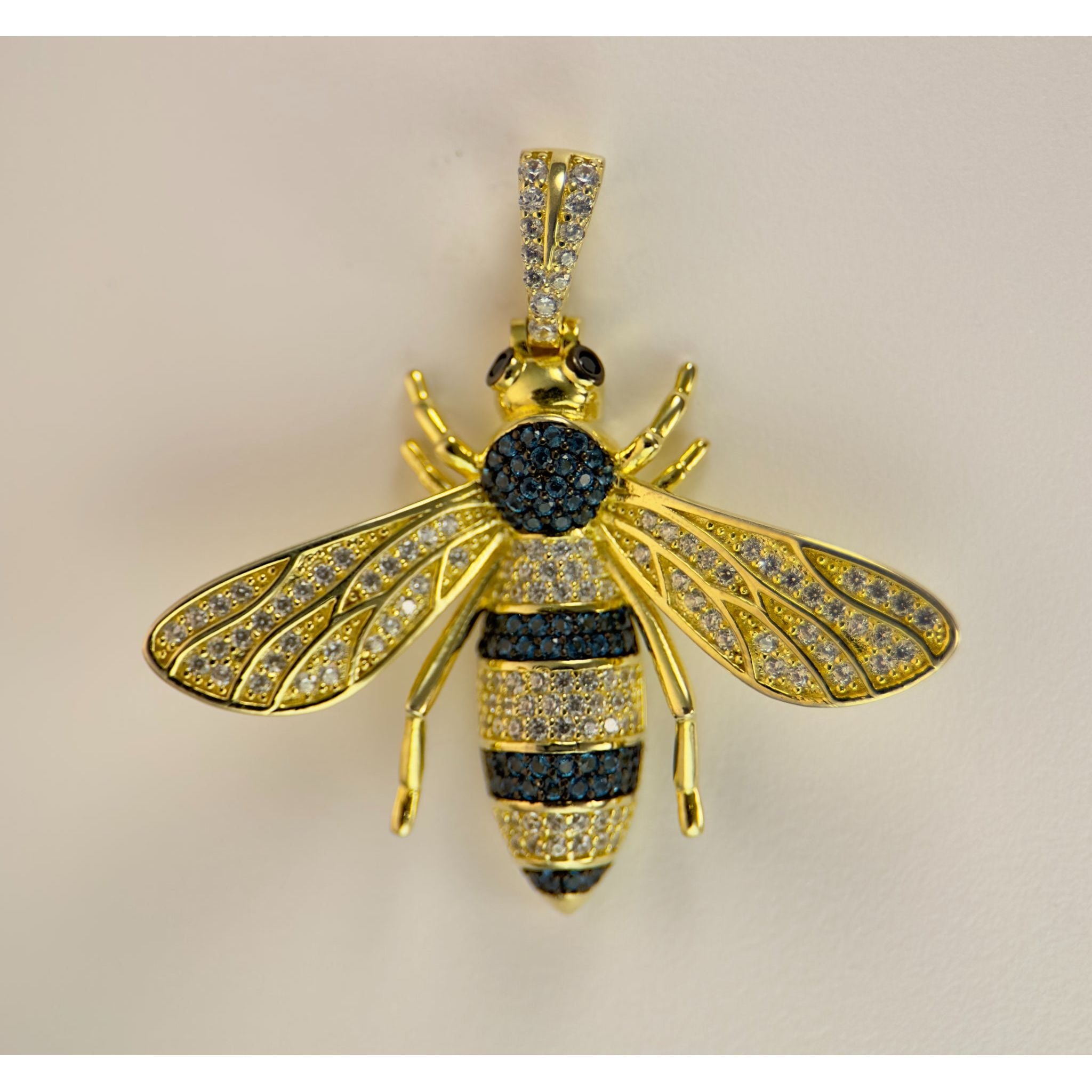 DR3173 - Plata de ley 925, oro de 14 k unido - Piedras creadas en laboratorio - Colgante - Colgante de abeja