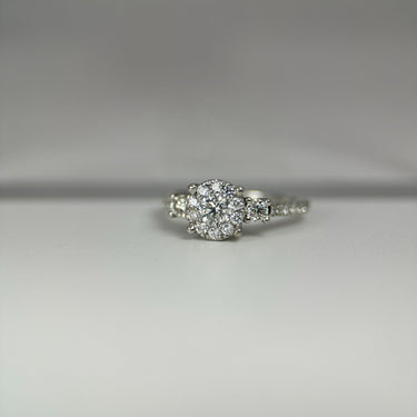 DR1124 - Oro blanco de 14 quilates - Redondo (Halo) - Diamante - Anillo nupcial