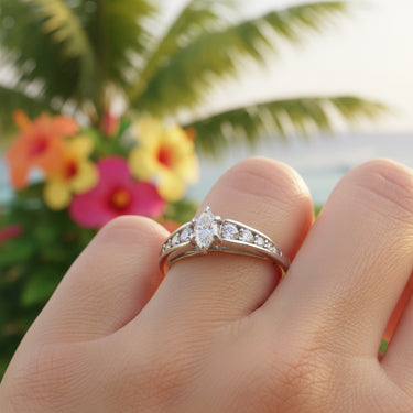 - Diamante brillante de talla marquesa para darle un toque de glamour